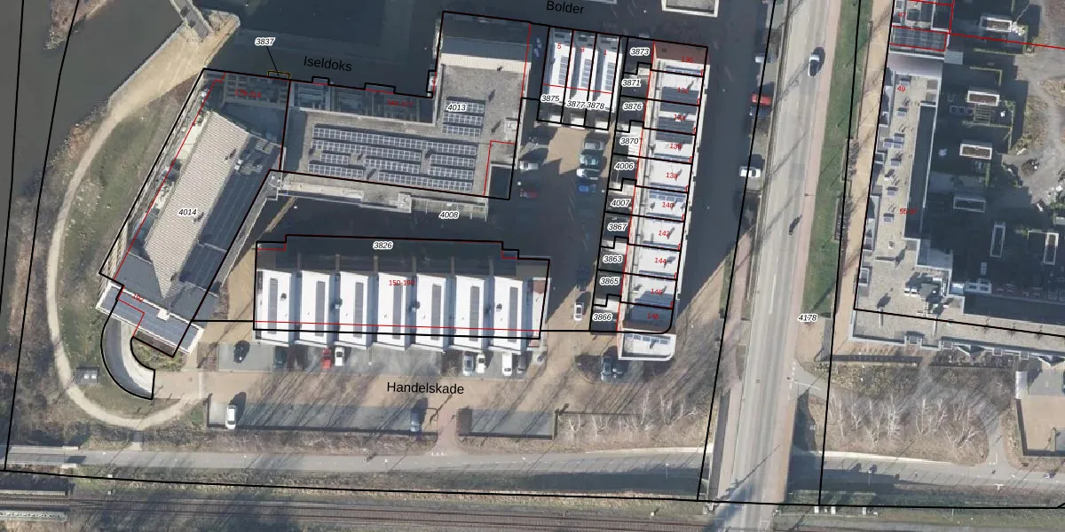 Het perceel waarop Handelskade 150 staat heeft een oppervlakte van 950 m². Dit is een groot perceel. De perceeloppervlakte wordt geregistreerd door het Kadaster. Gedetailleerde informatie over de maten van dit perceel kunt u vinden in het rapport Kadastrale kaart met maatvoering van Handelskade 150.