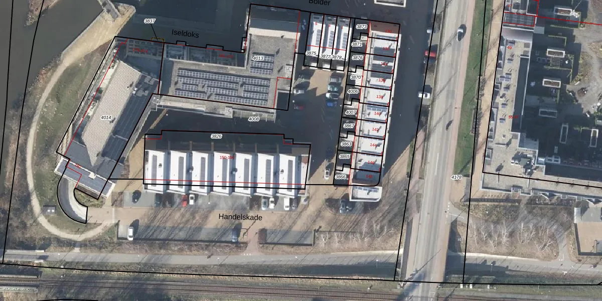 Het perceel waarop Handelskade 164 staat heeft een oppervlakte van 950 m². Dit is een groot perceel. De perceeloppervlakte wordt geregistreerd door het Kadaster. Gedetailleerde informatie over de maten van dit perceel kunt u vinden in het rapport Kadastrale kaart met maatvoering van Handelskade 164.