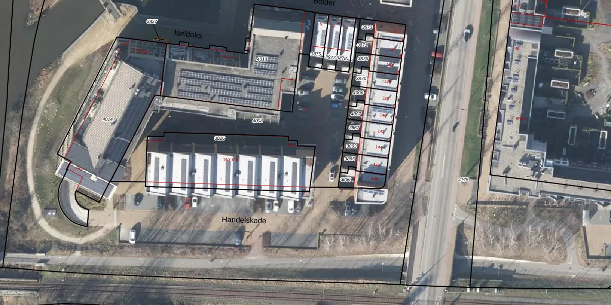 Het perceel waarop Handelskade 166 staat heeft een oppervlakte van 950 m². Dit is een groot perceel. De perceeloppervlakte wordt geregistreerd door het Kadaster. Gedetailleerde informatie over de maten van dit perceel kunt u vinden in het rapport Kadastrale kaart met maatvoering van Handelskade 166.