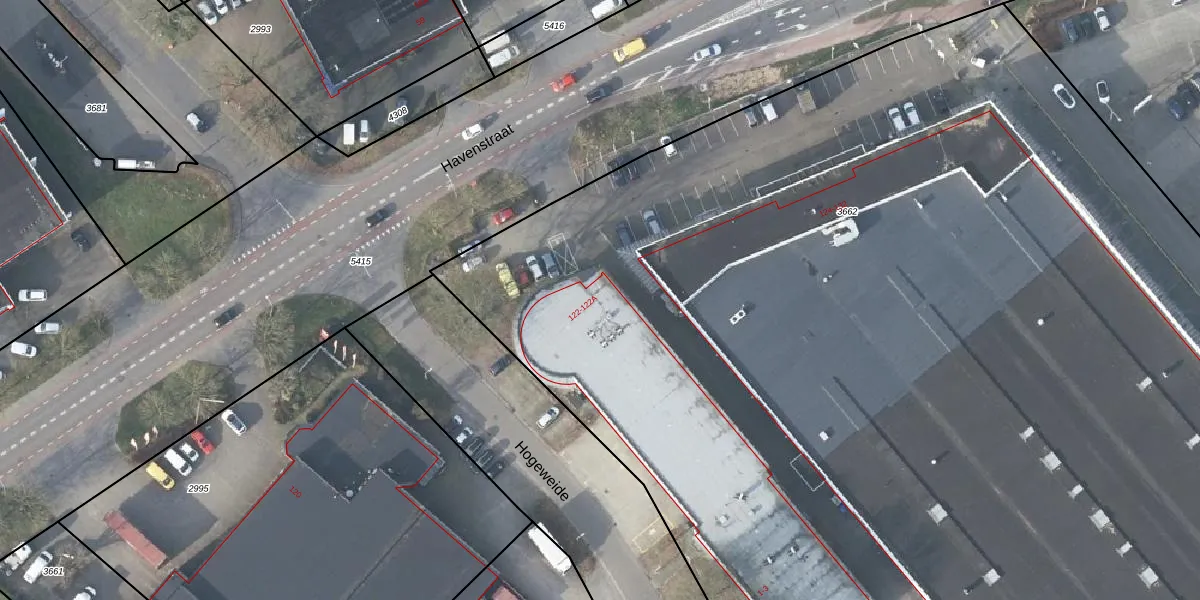 Het perceel waarop Havenstraat 122-A staat heeft een oppervlakte van 1,0 ha. Dit is een zeer groot perceel. De perceeloppervlakte wordt geregistreerd door het Kadaster. Gedetailleerde informatie over de maten van dit perceel kunt u vinden in het rapport Kadastrale kaart met maatvoering van Havenstraat 122-A.