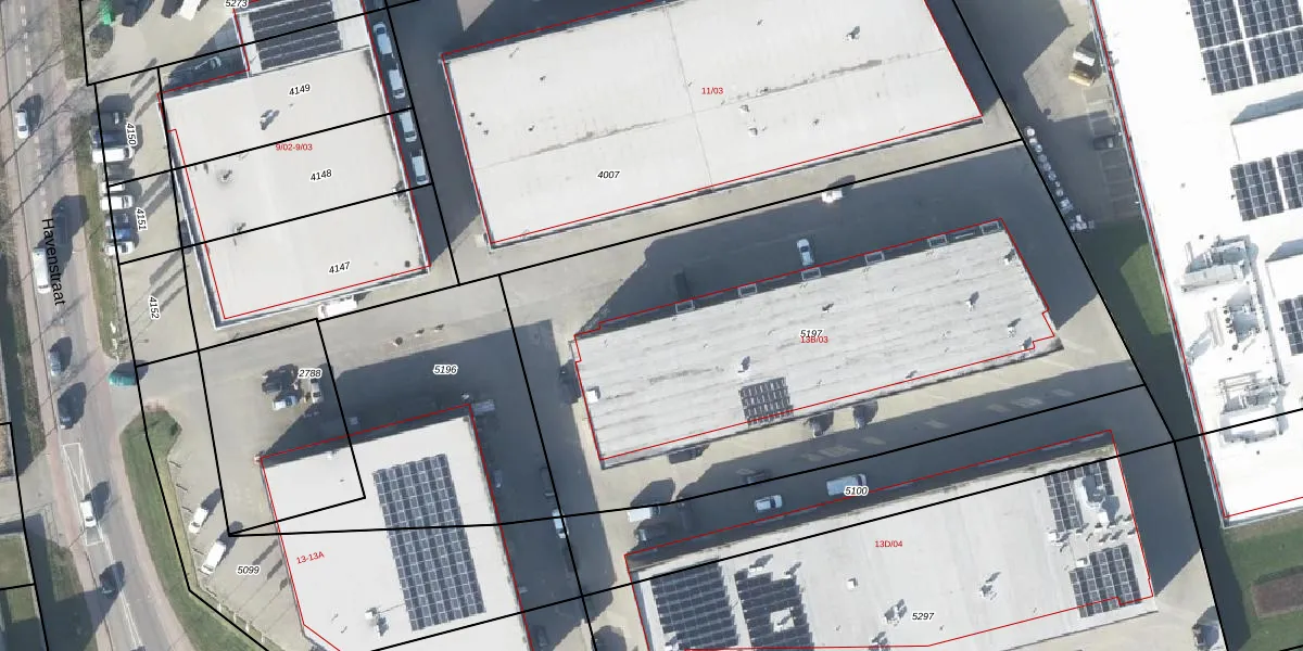 Het perceel waarop Havenstraat 13-B-02 staat heeft een oppervlakte van 3568 m². Dit is een zeer groot perceel. De perceeloppervlakte wordt geregistreerd door het Kadaster. Gedetailleerde informatie over de maten van dit perceel kunt u vinden in het rapport Kadastrale kaart met maatvoering van Havenstraat 13-B-02.