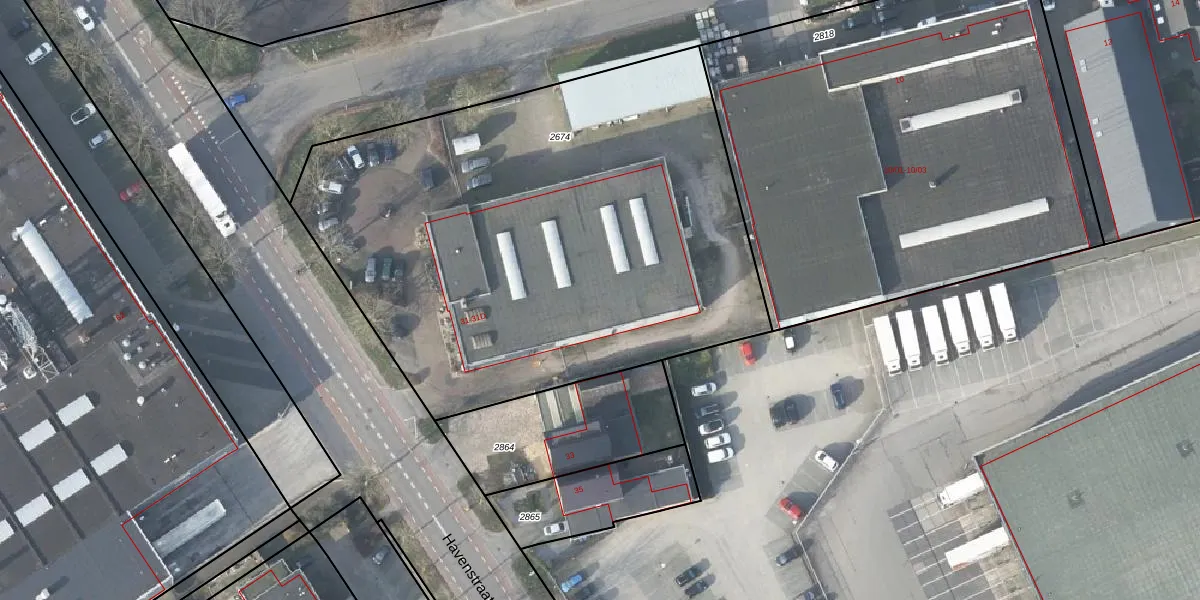 Het perceel waarop Havenstraat 31-C staat heeft een oppervlakte van 3245 m². Dit is een zeer groot perceel. De perceeloppervlakte wordt geregistreerd door het Kadaster. Gedetailleerde informatie over de maten van dit perceel kunt u vinden in het rapport Kadastrale kaart met maatvoering van Havenstraat 31-C.