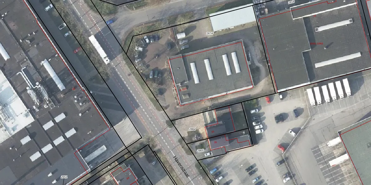 Het perceel waarop Havenstraat 31-A staat heeft een oppervlakte van 3245 m². Dit is een zeer groot perceel. De perceeloppervlakte wordt geregistreerd door het Kadaster. Gedetailleerde informatie over de maten van dit perceel kunt u vinden in het rapport Kadastrale kaart met maatvoering van Havenstraat 31-A.