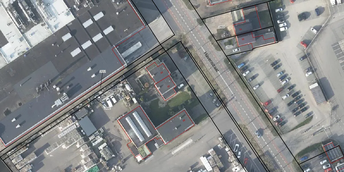 Het perceel waarop Havenstraat 66 staat heeft een oppervlakte van 2,0 ha. Dit is een zeer groot perceel. De perceeloppervlakte wordt geregistreerd door het Kadaster. Gedetailleerde informatie over de maten van dit perceel kunt u vinden in het rapport Kadastrale kaart met maatvoering van Havenstraat 66.