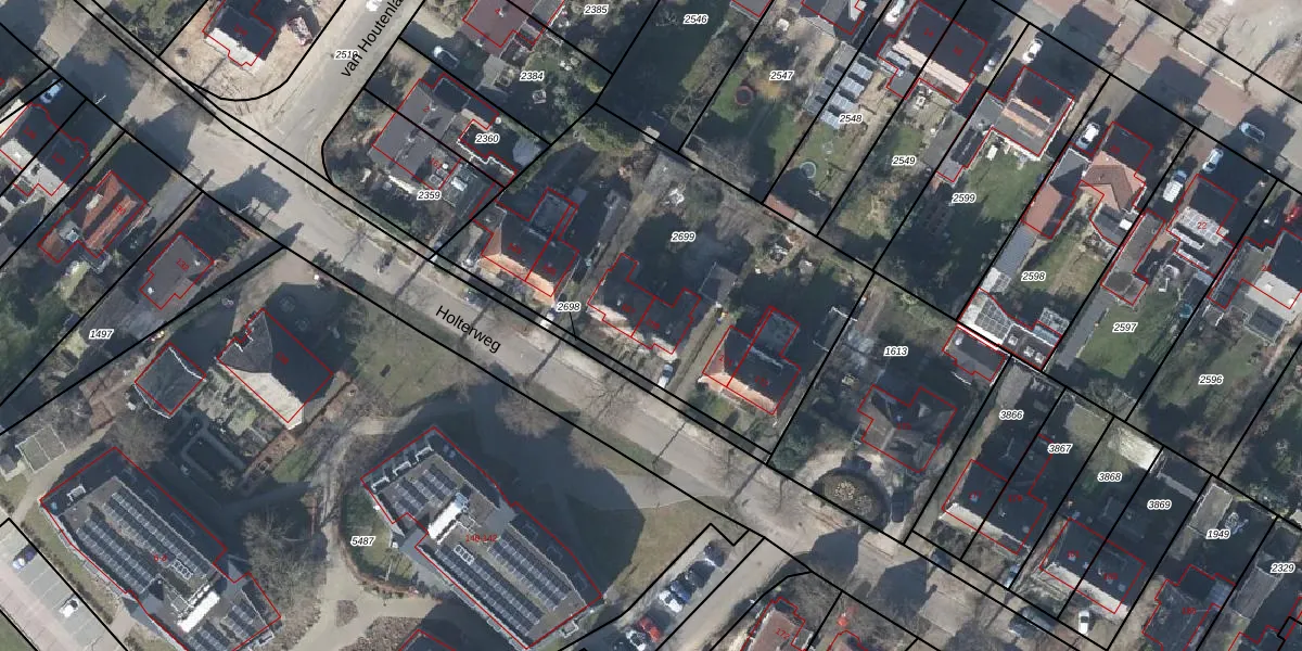 Het perceel waarop Holterweg 169 staat heeft een oppervlakte van 1783 m². Dit is een zeer groot perceel. De perceeloppervlakte wordt geregistreerd door het Kadaster. Gedetailleerde informatie over de maten van dit perceel kunt u vinden in het rapport Kadastrale kaart met maatvoering van Holterweg 169.