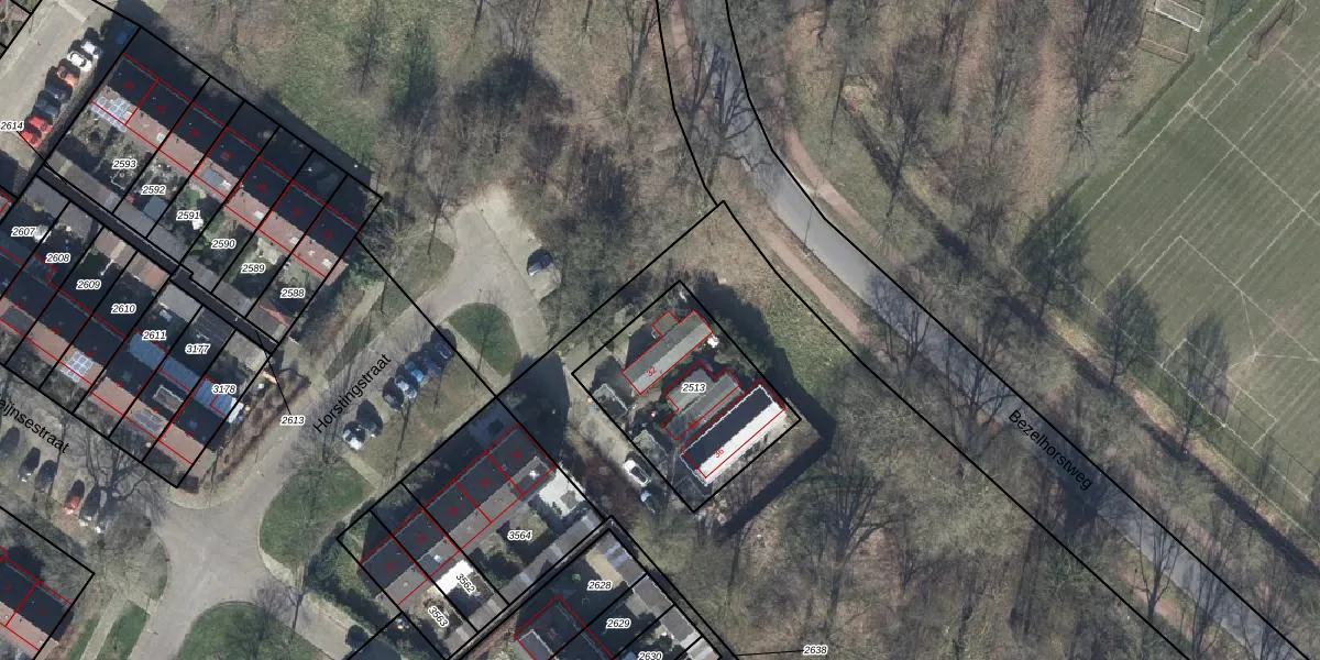 Het perceel waarop Horstingstraat 32 staat heeft een oppervlakte van 599 m². Dit is een groot perceel. De perceeloppervlakte wordt geregistreerd door het Kadaster. Gedetailleerde informatie over de maten van dit perceel kunt u vinden in het rapport Kadastrale kaart met maatvoering van Horstingstraat 32.