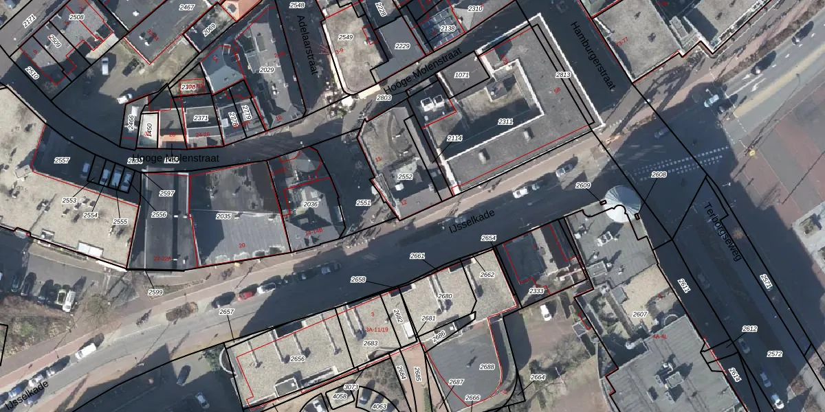 Het perceel waarop IJsselkade 12 staat heeft een oppervlakte van 336 m². Dit is een groot perceel. De perceeloppervlakte wordt geregistreerd door het Kadaster. Gedetailleerde informatie over de maten van dit perceel kunt u vinden in het rapport Kadastrale kaart met maatvoering van IJsselkade 12.