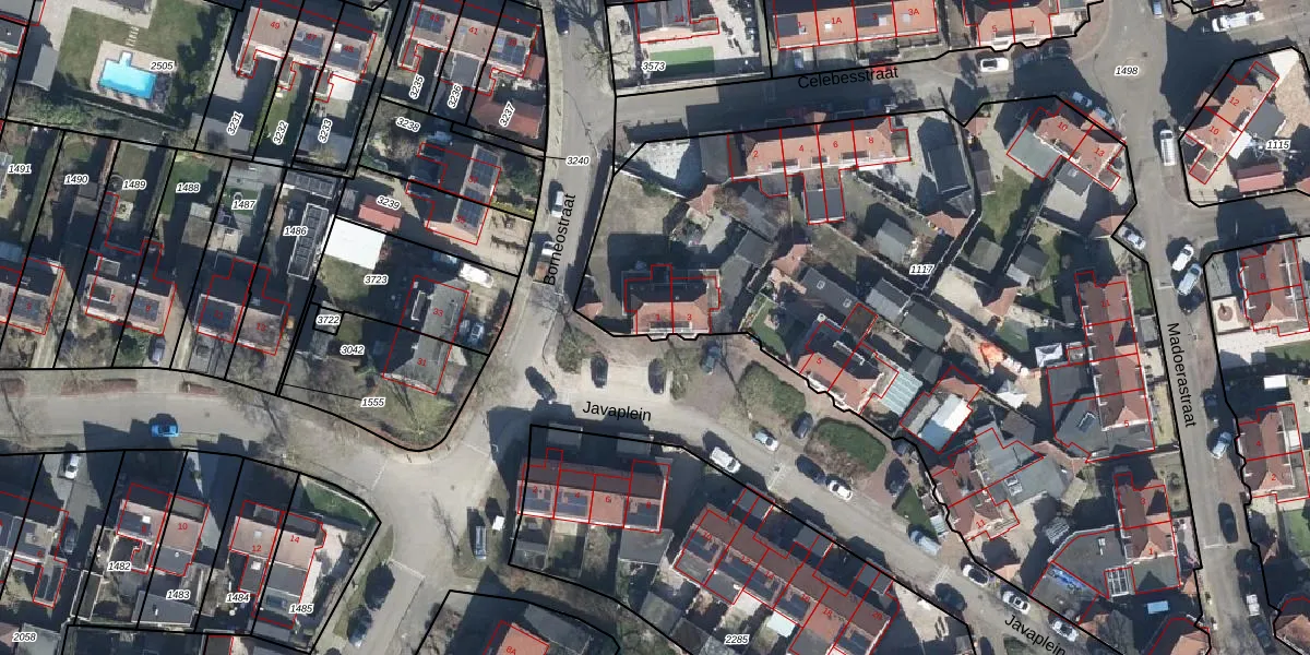 Het perceel waarop Javaplein 1 staat heeft een oppervlakte van 4628 m². Dit is een zeer groot perceel. De perceeloppervlakte wordt geregistreerd door het Kadaster. Gedetailleerde informatie over de maten van dit perceel kunt u vinden in het rapport Kadastrale kaart met maatvoering van Javaplein 1.