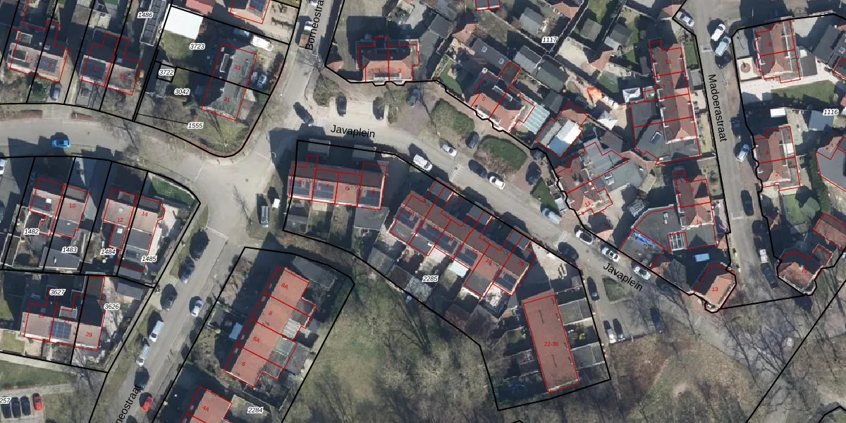 Het perceel waarop Javaplein 10 staat heeft een oppervlakte van 2252 m². Dit is een zeer groot perceel. De perceeloppervlakte wordt geregistreerd door het Kadaster. Gedetailleerde informatie over de maten van dit perceel kunt u vinden in het rapport Kadastrale kaart met maatvoering van Javaplein 10.