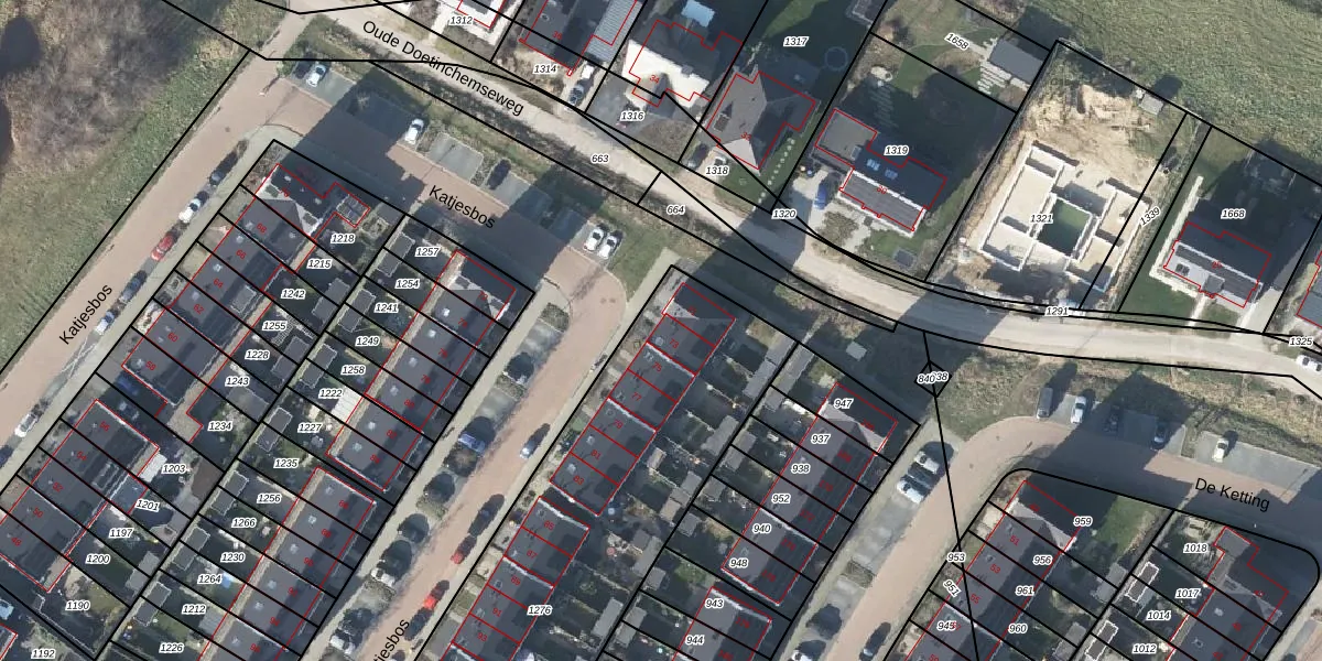 Katjesbos 73 is gelegen op kadastraal perceel DTC01P1276. Deze kadastrale aanduiding is uniek en wordt gebruikt door het Kadaster om eigendomsrechten en andere zakelijke rechten vast te leggen. Het perceel maakt onderdeel uit van de kadastrale gemeente Ambt-Doetinchem.