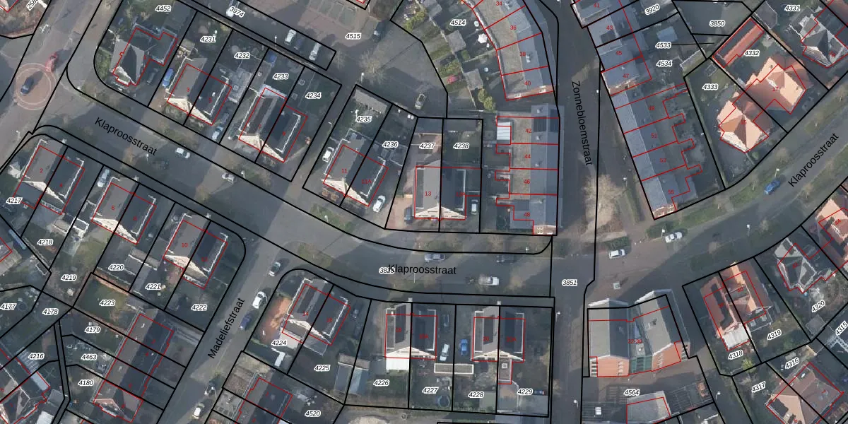 Gebruik de zoekbalk of klik op een perceel voor informatie over de adressen binnen dit perceel.