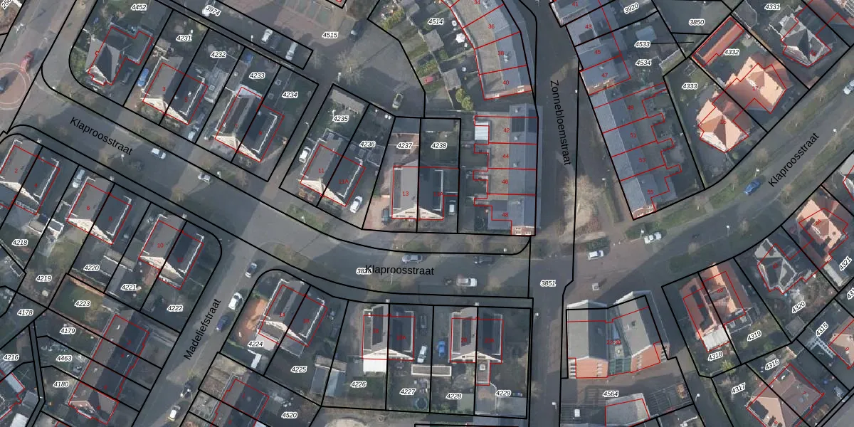Het perceel waarop Klaproosstraat 13-A staat heeft een oppervlakte van 253 m². Dit is een middelgroot perceel. De perceeloppervlakte wordt geregistreerd door het Kadaster. Gedetailleerde informatie over de maten van dit perceel kunt u vinden in het rapport Kadastrale kaart met maatvoering van Klaproosstraat 13-A.