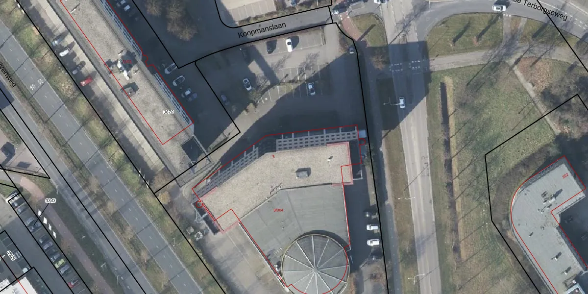 Het perceel waarop Koopmanslaan 3-106 staat heeft een oppervlakte van 6940 m². Dit is een zeer groot perceel. De perceeloppervlakte wordt geregistreerd door het Kadaster. Gedetailleerde informatie over de maten van dit perceel kunt u vinden in het rapport Kadastrale kaart met maatvoering van Koopmanslaan 3-106.