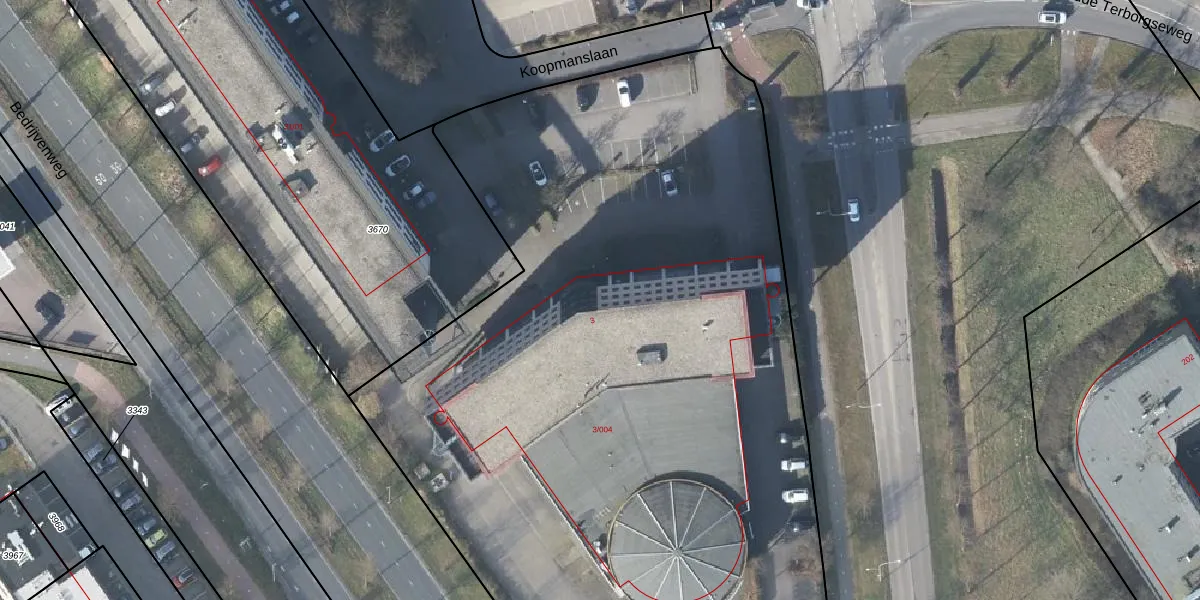 Het perceel waarop Koopmanslaan 3 staat heeft een oppervlakte van 6940 m². Dit is een zeer groot perceel. De perceeloppervlakte wordt geregistreerd door het Kadaster. Gedetailleerde informatie over de maten van dit perceel kunt u vinden in het rapport Kadastrale kaart met maatvoering van Koopmanslaan 3.