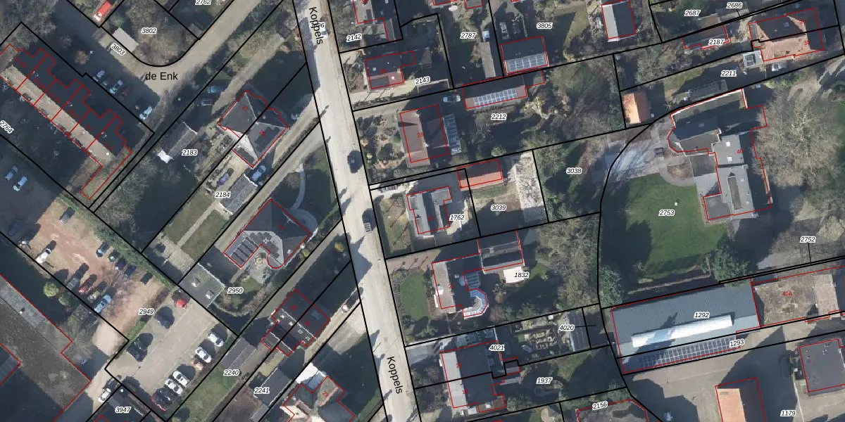 Het perceel waarop Koppels 26 staat heeft een oppervlakte van 401 m². Dit is een groot perceel. De perceeloppervlakte wordt geregistreerd door het Kadaster. Gedetailleerde informatie over de maten van dit perceel kunt u vinden in het rapport Kadastrale kaart met maatvoering van Koppels 26.