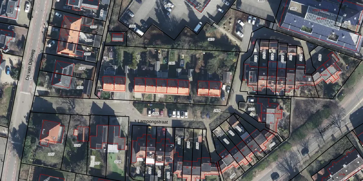 Het perceel waarop Lampongstraat 13 staat heeft een oppervlakte van 2193 m². Dit is een zeer groot perceel. De perceeloppervlakte wordt geregistreerd door het Kadaster. Gedetailleerde informatie over de maten van dit perceel kunt u vinden in het rapport Kadastrale kaart met maatvoering van Lampongstraat 13.
