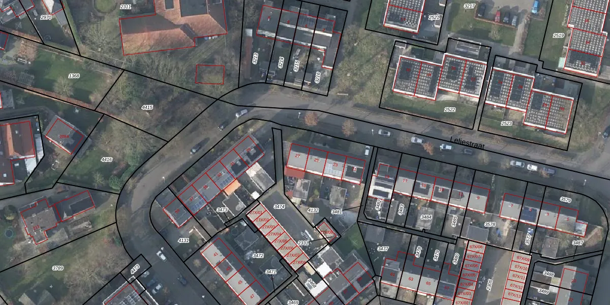 Het perceel waarop Leliestraat 27 staat heeft een oppervlakte van 1916 m². Dit is een zeer groot perceel. De perceeloppervlakte wordt geregistreerd door het Kadaster. Gedetailleerde informatie over de maten van dit perceel kunt u vinden in het rapport Kadastrale kaart met maatvoering van Leliestraat 27.