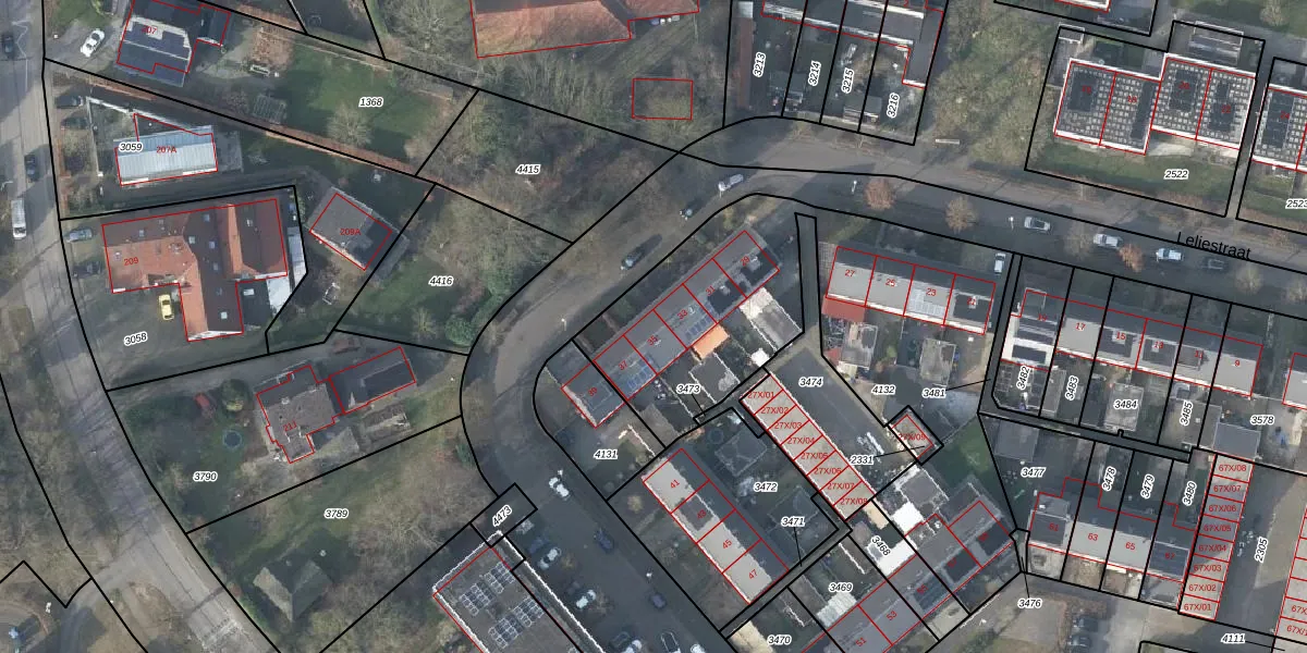 Het perceel waarop Leliestraat 35 staat heeft een oppervlakte van 1916 m². Dit is een zeer groot perceel. De perceeloppervlakte wordt geregistreerd door het Kadaster. Gedetailleerde informatie over de maten van dit perceel kunt u vinden in het rapport Kadastrale kaart met maatvoering van Leliestraat 35.