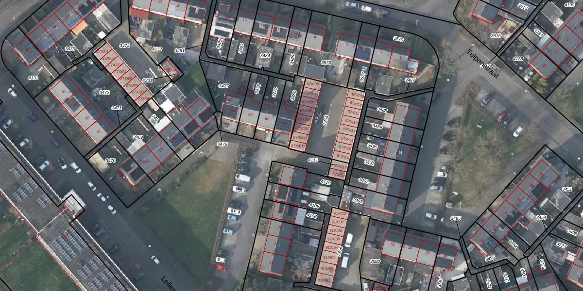 Het perceel waarop Leliestraat 67-X-01 staat heeft een oppervlakte van 538 m². Dit is een groot perceel. De perceeloppervlakte wordt geregistreerd door het Kadaster. Gedetailleerde informatie over de maten van dit perceel kunt u vinden in het rapport Kadastrale kaart met maatvoering van Leliestraat 67-X-01.
