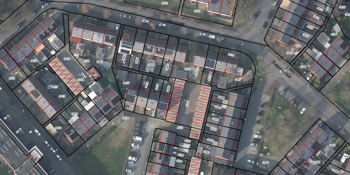 Het perceel waarop Leliestraat 67-X-07 staat heeft een oppervlakte van 538 m². Dit is een groot perceel. De perceeloppervlakte wordt geregistreerd door het Kadaster. Gedetailleerde informatie over de maten van dit perceel kunt u vinden in het rapport Kadastrale kaart met maatvoering van Leliestraat 67-X-07.