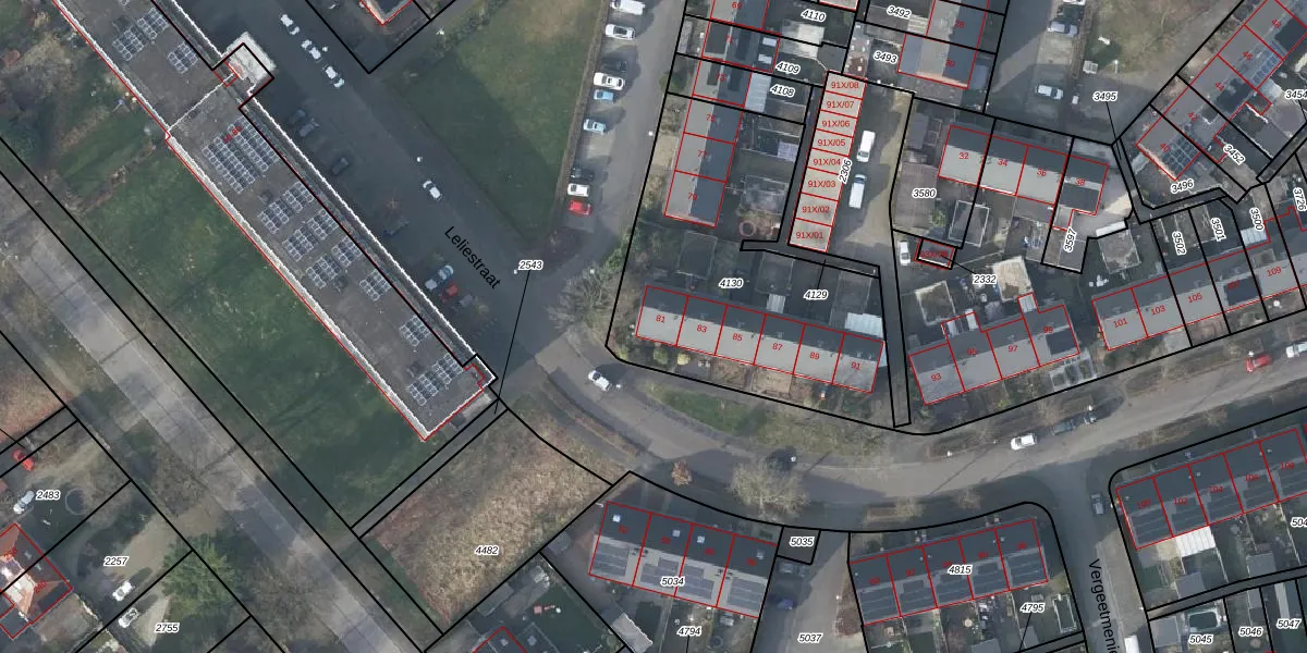 Het perceel waarop Leliestraat 81 staat heeft een oppervlakte van 2565 m². Dit is een zeer groot perceel. De perceeloppervlakte wordt geregistreerd door het Kadaster. Gedetailleerde informatie over de maten van dit perceel kunt u vinden in het rapport Kadastrale kaart met maatvoering van Leliestraat 81.