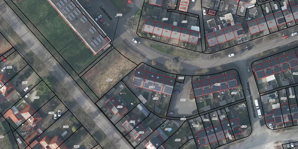 Het perceel waarop Leliestraat 84 staat heeft een oppervlakte van 772 m². Dit is een groot perceel. De perceeloppervlakte wordt geregistreerd door het Kadaster. Gedetailleerde informatie over de maten van dit perceel kunt u vinden in het rapport Kadastrale kaart met maatvoering van Leliestraat 84.