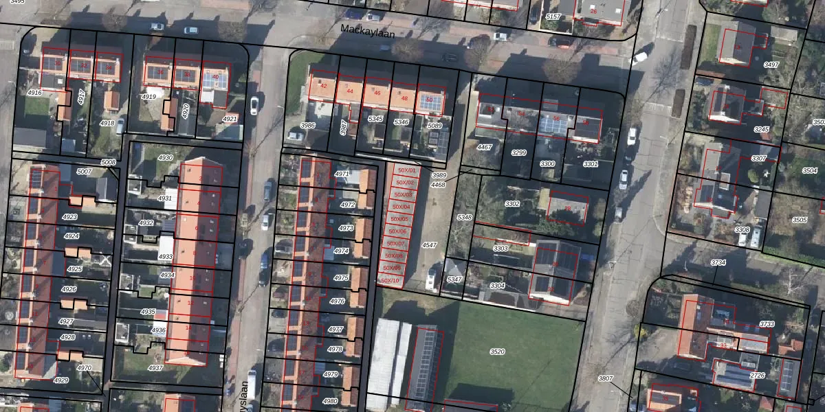 Het perceel waarop Mackaylaan 50-X-04 staat heeft een oppervlakte van 593 m². Dit is een groot perceel. De perceeloppervlakte wordt geregistreerd door het Kadaster. Gedetailleerde informatie over de maten van dit perceel kunt u vinden in het rapport Kadastrale kaart met maatvoering van Mackaylaan 50-X-04.