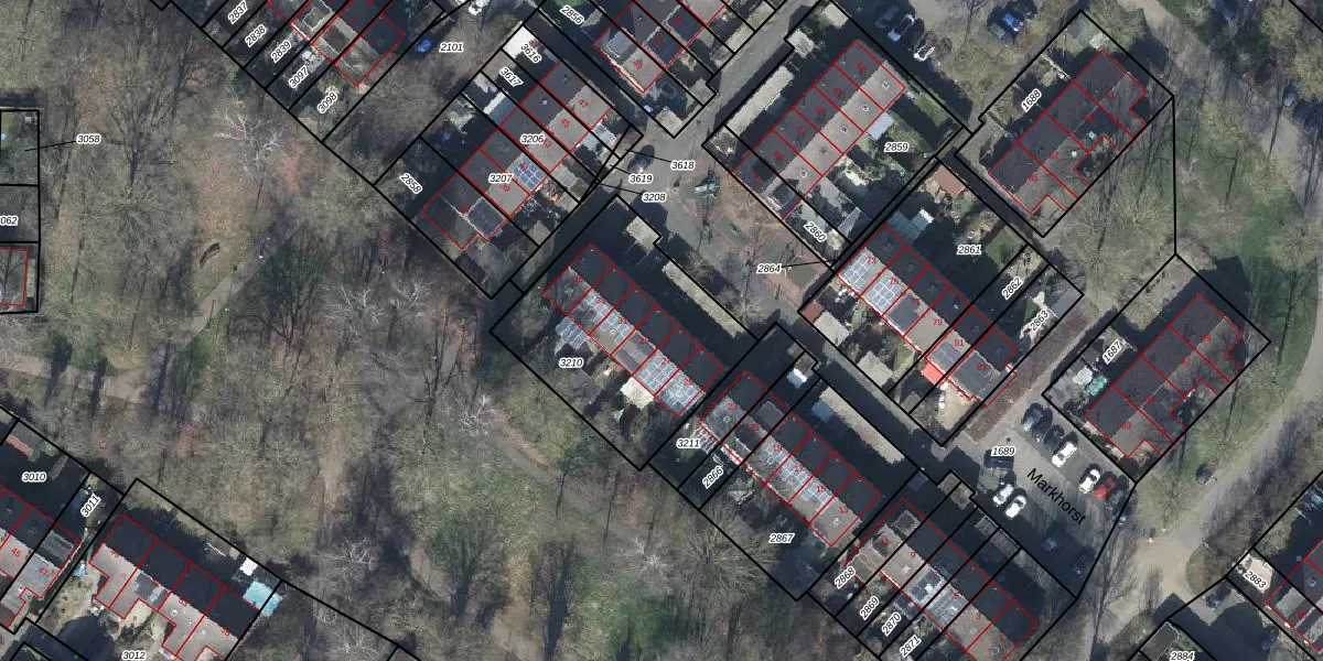 Het perceel waarop Markhorst 29 staat heeft een oppervlakte van 853 m². Dit is een groot perceel. De perceeloppervlakte wordt geregistreerd door het Kadaster. Gedetailleerde informatie over de maten van dit perceel kunt u vinden in het rapport Kadastrale kaart met maatvoering van Markhorst 29.