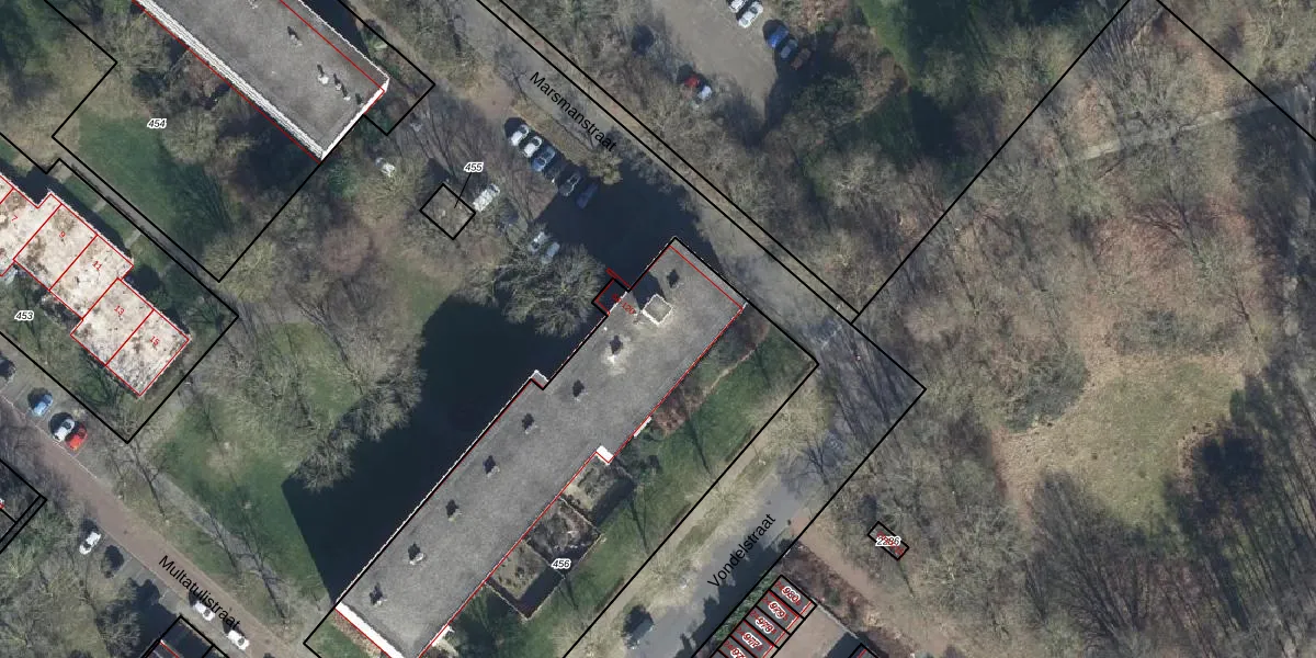 Het perceel waarop Marsmanstraat 64 staat heeft een oppervlakte van 2562 m². Dit is een zeer groot perceel. De perceeloppervlakte wordt geregistreerd door het Kadaster. Gedetailleerde informatie over de maten van dit perceel kunt u vinden in het rapport Kadastrale kaart met maatvoering van Marsmanstraat 64.