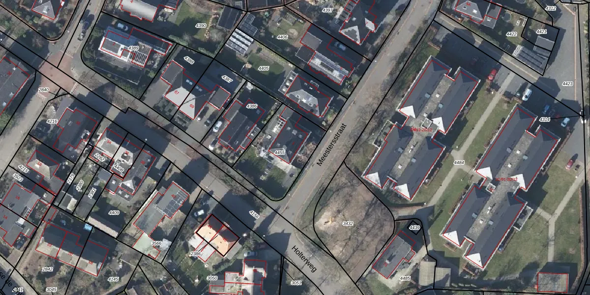 Het perceel waarop Meestersstraat 1 staat heeft een oppervlakte van 553 m². Dit is een groot perceel. De perceeloppervlakte wordt geregistreerd door het Kadaster. Gedetailleerde informatie over de maten van dit perceel kunt u vinden in het rapport Kadastrale kaart met maatvoering van Meestersstraat 1.