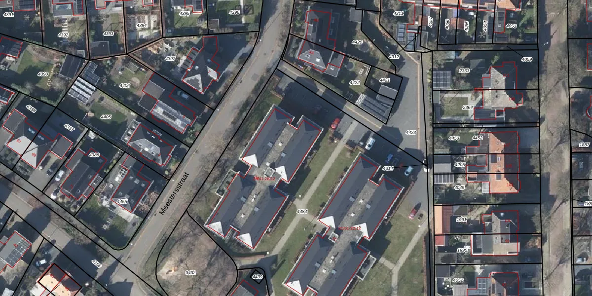 Het perceel waarop Meestersstraat 2-B-10 staat heeft een oppervlakte van 5066 m². Dit is een zeer groot perceel. De perceeloppervlakte wordt geregistreerd door het Kadaster. Gedetailleerde informatie over de maten van dit perceel kunt u vinden in het rapport Kadastrale kaart met maatvoering van Meestersstraat 2-B-10.