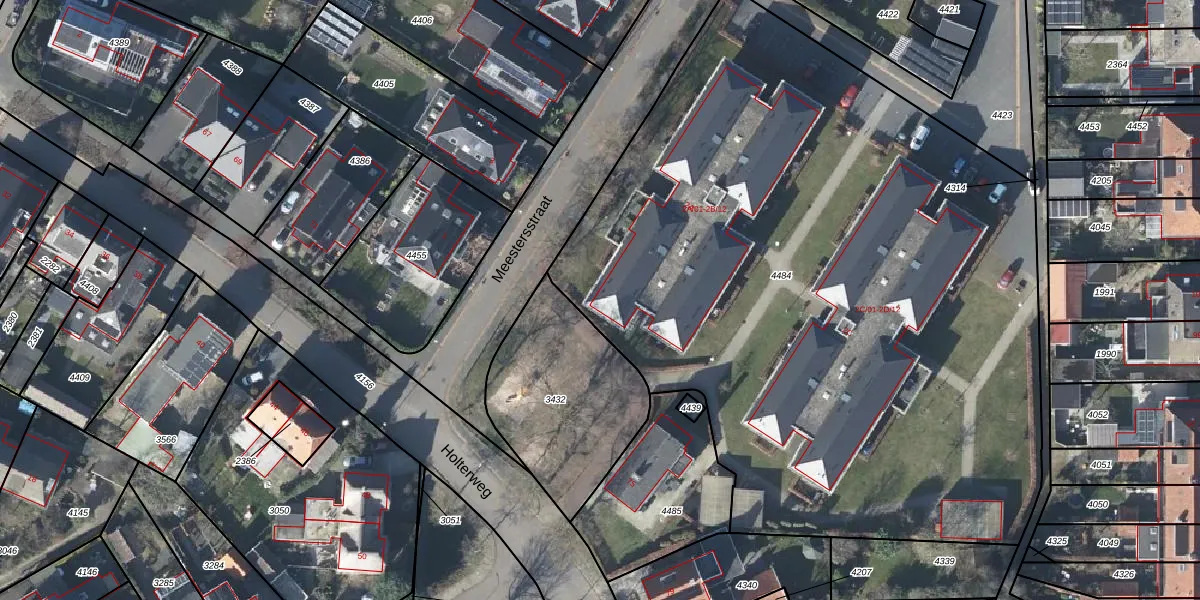 Het perceel waarop Meestersstraat 2-A-05 staat heeft een oppervlakte van 5066 m². Dit is een zeer groot perceel. De perceeloppervlakte wordt geregistreerd door het Kadaster. Gedetailleerde informatie over de maten van dit perceel kunt u vinden in het rapport Kadastrale kaart met maatvoering van Meestersstraat 2-A-05.