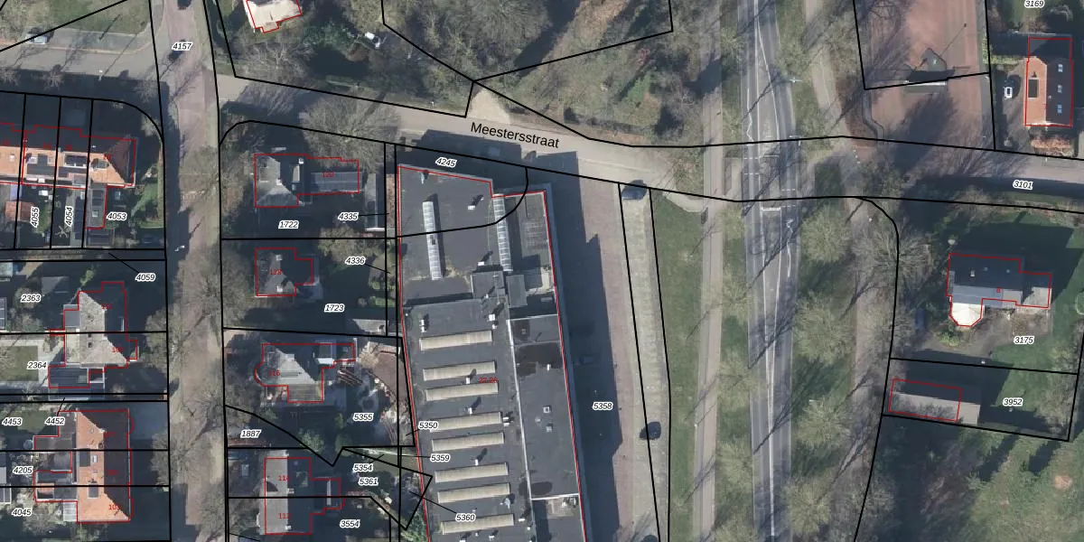 Het perceel waarop Meestersstraat 22 staat heeft een oppervlakte van 3275 m². Dit is een zeer groot perceel. De perceeloppervlakte wordt geregistreerd door het Kadaster. Gedetailleerde informatie over de maten van dit perceel kunt u vinden in het rapport Kadastrale kaart met maatvoering van Meestersstraat 22.