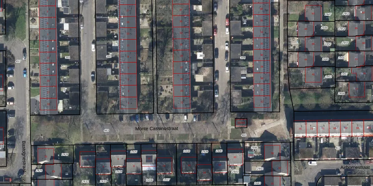 Het perceel waarop Monte Cassinostraat 23 staat heeft een oppervlakte van 2013 m². Dit is een zeer groot perceel. De perceeloppervlakte wordt geregistreerd door het Kadaster. Gedetailleerde informatie over de maten van dit perceel kunt u vinden in het rapport Kadastrale kaart met maatvoering van Monte Cassinostraat 23.