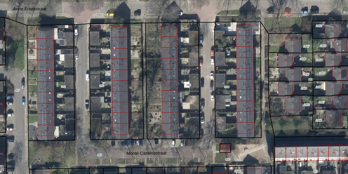 Het perceel waarop Monte Cassinostraat 29 staat heeft een oppervlakte van 2013 m². Dit is een zeer groot perceel. De perceeloppervlakte wordt geregistreerd door het Kadaster. Gedetailleerde informatie over de maten van dit perceel kunt u vinden in het rapport Kadastrale kaart met maatvoering van Monte Cassinostraat 29.