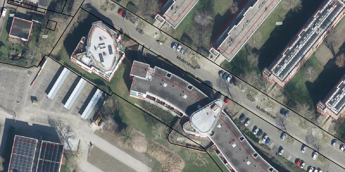 Het perceel waarop Mullerstraat 88 staat heeft een oppervlakte van 8155 m². Dit is een zeer groot perceel. De perceeloppervlakte wordt geregistreerd door het Kadaster. Gedetailleerde informatie over de maten van dit perceel kunt u vinden in het rapport Kadastrale kaart met maatvoering van Mullerstraat 88.