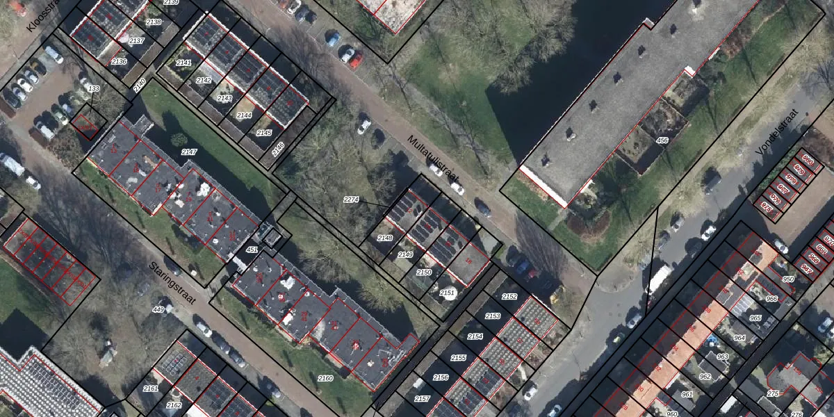 Het perceel waarop Multatulistraat 12 staat heeft een oppervlakte van 154 m². Dit is een middelgroot perceel. De perceeloppervlakte wordt geregistreerd door het Kadaster. Gedetailleerde informatie over de maten van dit perceel kunt u vinden in het rapport Kadastrale kaart met maatvoering van Multatulistraat 12.