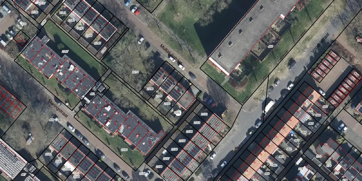 Het perceel waarop Multatulistraat 16 staat heeft een oppervlakte van 150 m². Dit is een middelgroot perceel. De perceeloppervlakte wordt geregistreerd door het Kadaster. Gedetailleerde informatie over de maten van dit perceel kunt u vinden in het rapport Kadastrale kaart met maatvoering van Multatulistraat 16.