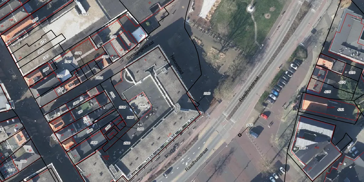 Het perceel waarop Nieuwstad 9-11 staat heeft een oppervlakte van 2325 m². Dit is een zeer groot perceel. De perceeloppervlakte wordt geregistreerd door het Kadaster. Gedetailleerde informatie over de maten van dit perceel kunt u vinden in het rapport Kadastrale kaart met maatvoering van Nieuwstad 9-11.