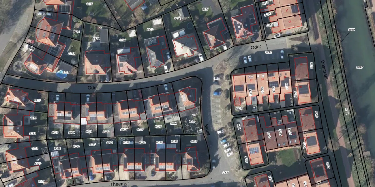 Het perceel waarop Oder 20 staat heeft een oppervlakte van 380 m². Dit is een groot perceel. De perceeloppervlakte wordt geregistreerd door het Kadaster. Gedetailleerde informatie over de maten van dit perceel kunt u vinden in het rapport Kadastrale kaart met maatvoering van Oder 20.