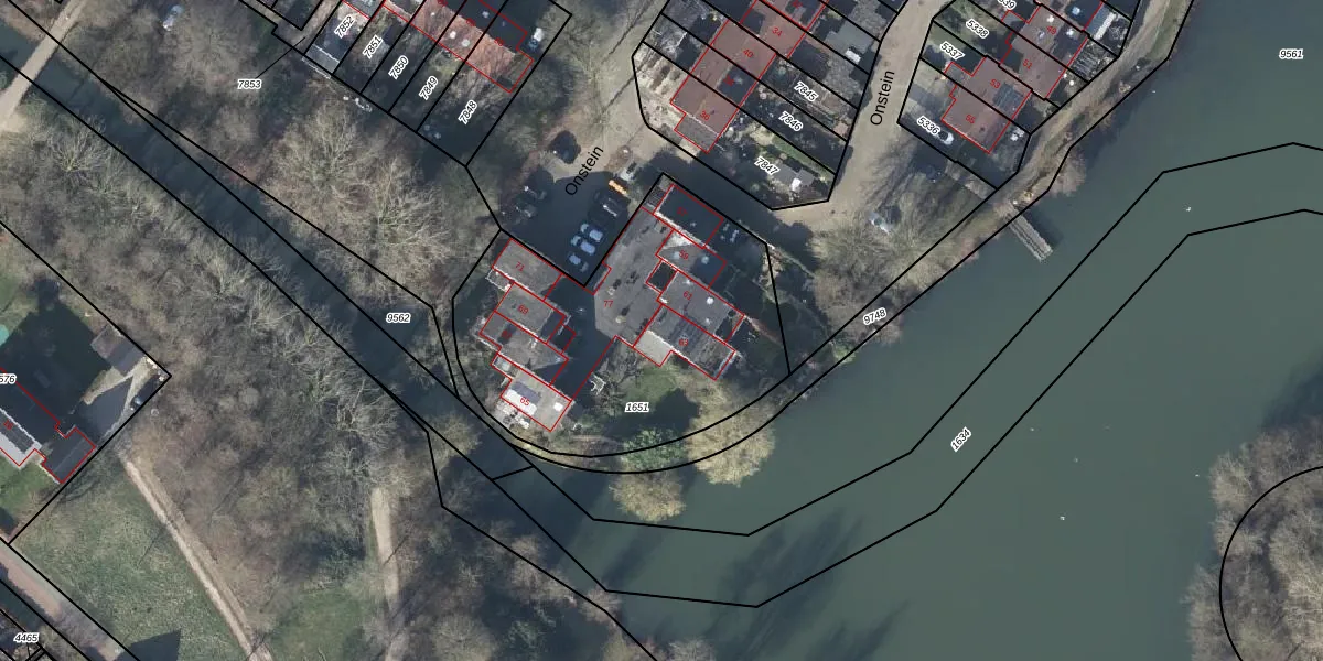 Het perceel waarop Onstein 63 staat heeft een oppervlakte van 1448 m². Dit is een zeer groot perceel. De perceeloppervlakte wordt geregistreerd door het Kadaster. Gedetailleerde informatie over de maten van dit perceel kunt u vinden in het rapport Kadastrale kaart met maatvoering van Onstein 63.