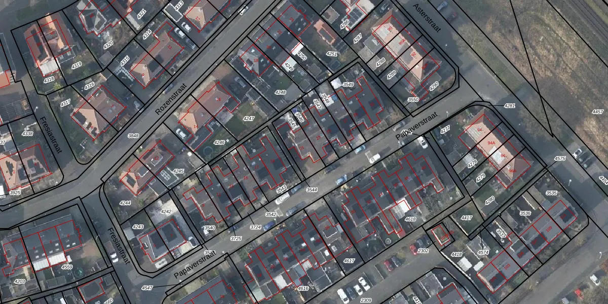 Gebruik de zoekbalk of klik op een perceel voor informatie over de adressen binnen dit perceel.