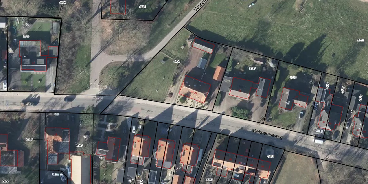 Het perceel waarop Rekhemseweg 21 staat heeft een oppervlakte van 1587 m². Dit is een zeer groot perceel. De perceeloppervlakte wordt geregistreerd door het Kadaster. Gedetailleerde informatie over de maten van dit perceel kunt u vinden in het rapport Kadastrale kaart met maatvoering van Rekhemseweg 21.