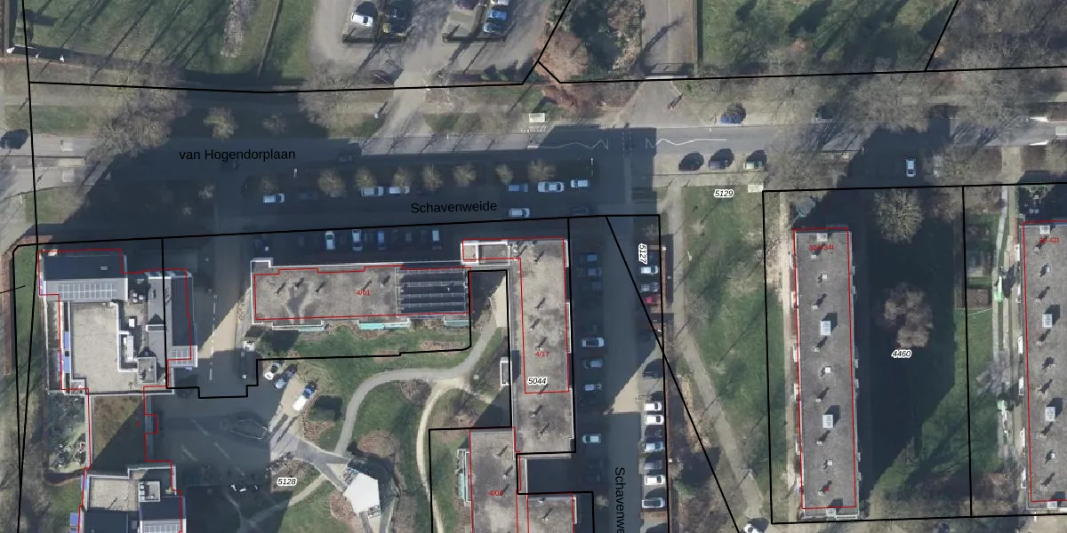Schavenweide 4-17 is gelegen op kadastraal perceel DTC01M5044. Deze kadastrale aanduiding is uniek en wordt gebruikt door het Kadaster om eigendomsrechten en andere zakelijke rechten vast te leggen. Het perceel maakt onderdeel uit van de kadastrale gemeente Ambt-Doetinchem.