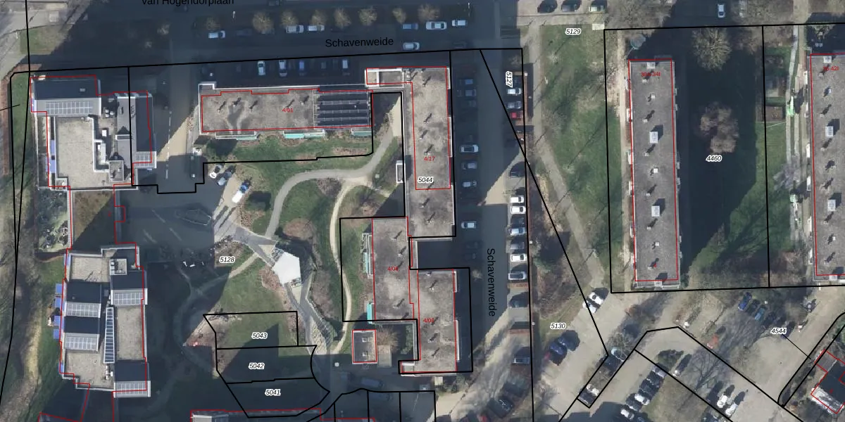 Schavenweide 4-53 is gelegen op kadastraal perceel DTC01M5044. Deze kadastrale aanduiding is uniek en wordt gebruikt door het Kadaster om eigendomsrechten en andere zakelijke rechten vast te leggen. Het perceel maakt onderdeel uit van de kadastrale gemeente Ambt-Doetinchem.