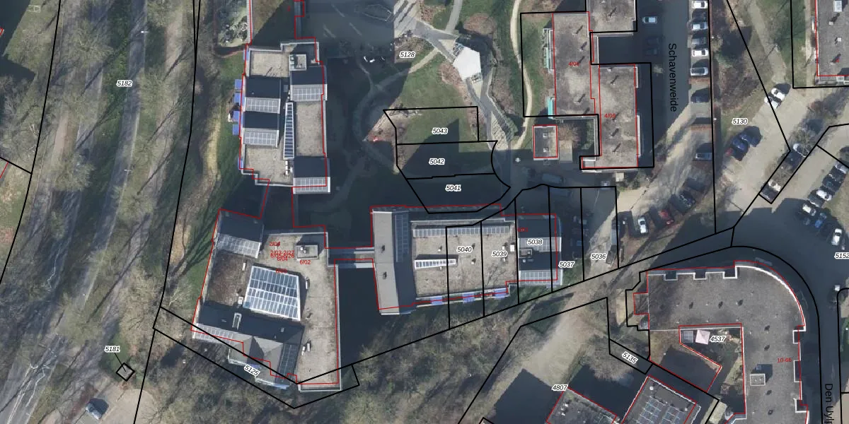 Het perceel waarop Schavenweide 6-21 staat heeft een oppervlakte van 9110 m². Dit is een zeer groot perceel. De perceeloppervlakte wordt geregistreerd door het Kadaster. Gedetailleerde informatie over de maten van dit perceel kunt u vinden in het rapport Kadastrale kaart met maatvoering van Schavenweide 6-21.