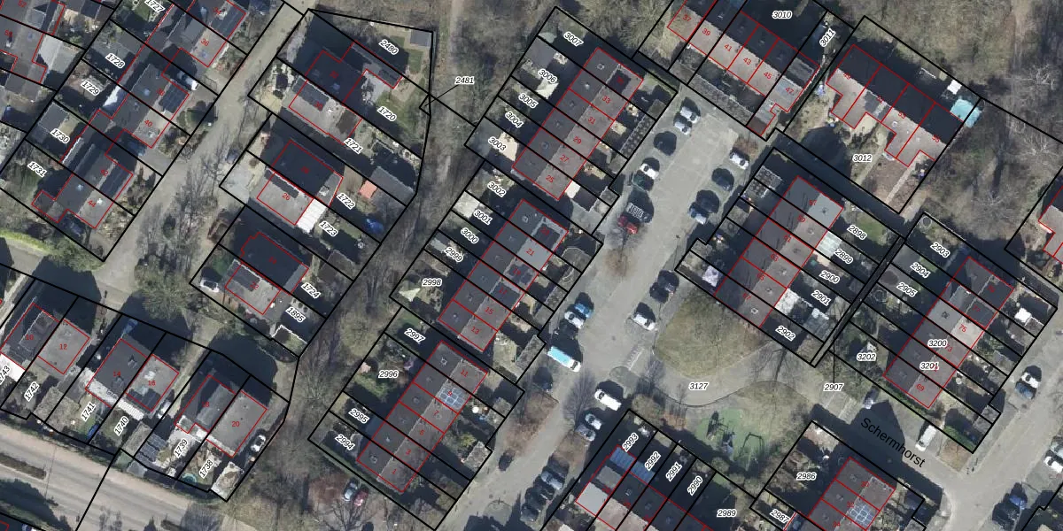 Het perceel waarop Schermhorst 21 staat heeft een oppervlakte van 121 m². Dit is een middelgroot perceel. De perceeloppervlakte wordt geregistreerd door het Kadaster. Gedetailleerde informatie over de maten van dit perceel kunt u vinden in het rapport Kadastrale kaart met maatvoering van Schermhorst 21.