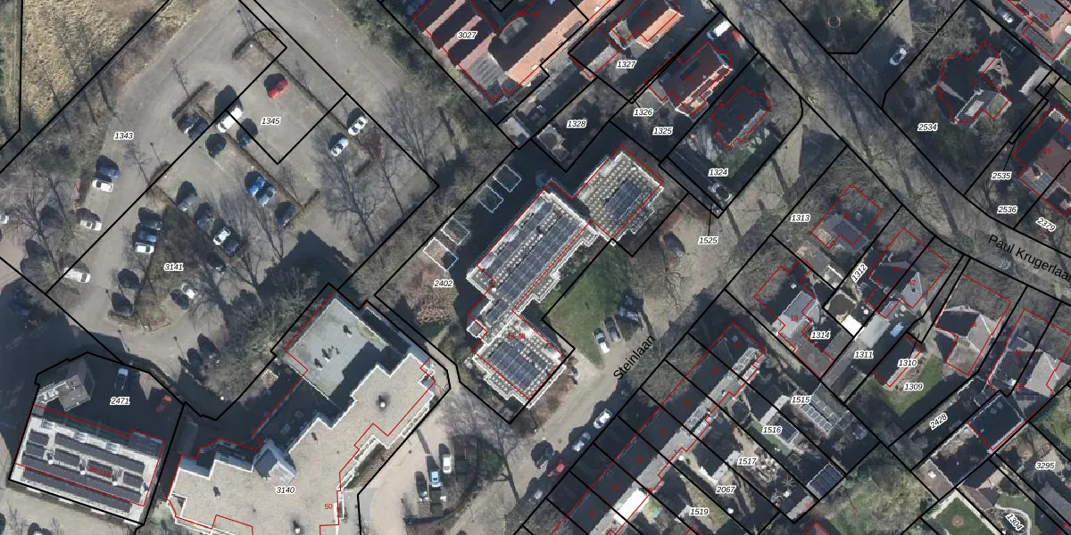 Het perceel waarop Steinlaan 46 staat heeft een oppervlakte van 1485 m². Dit is een zeer groot perceel. De perceeloppervlakte wordt geregistreerd door het Kadaster. Gedetailleerde informatie over de maten van dit perceel kunt u vinden in het rapport Kadastrale kaart met maatvoering van Steinlaan 46.