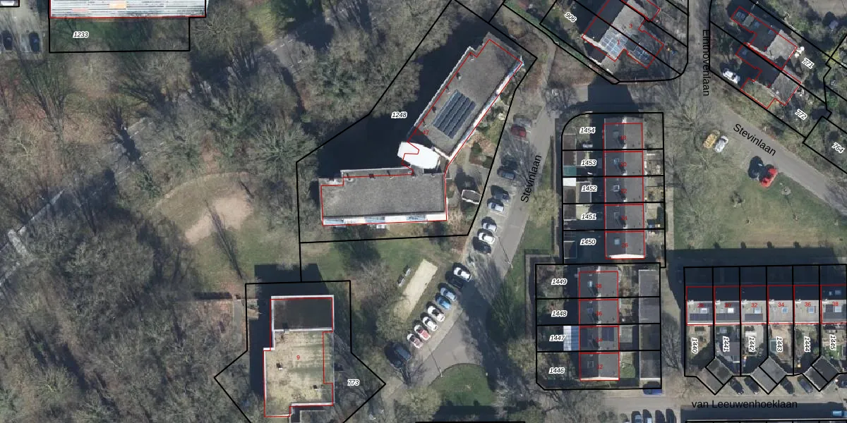 Het perceel waarop Stevinlaan 33 staat heeft een oppervlakte van 1850 m². Dit is een zeer groot perceel. De perceeloppervlakte wordt geregistreerd door het Kadaster. Gedetailleerde informatie over de maten van dit perceel kunt u vinden in het rapport Kadastrale kaart met maatvoering van Stevinlaan 33.