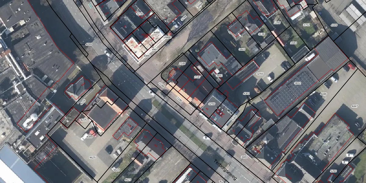 Terborgseweg 45 is gelegen op kadastraal perceel DTC01M2187. Deze kadastrale aanduiding is uniek en wordt gebruikt door het Kadaster om eigendomsrechten en andere zakelijke rechten vast te leggen. Het perceel maakt onderdeel uit van de kadastrale gemeente Ambt-Doetinchem.